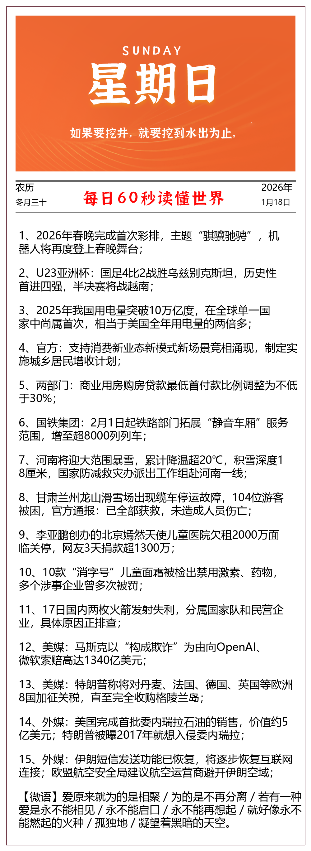 【每日早报】-2026-01-18 - 星期日